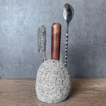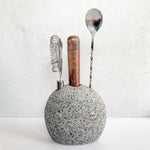 The Home Bartender Kit allows anyone to become a mixologist and create delicious hand-crafted cocktails on a professional level, no matter the occasion. Each kit includes all the tools you need to make the perfect drink. The stone is drilled to accommodate the durable utensils provided, keeping them ready to use in a moment's notice!