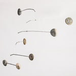 Inspired by American sculptor and innovator Alexander Calder, our Stone Mobile brings good, healing and calm energy into any indoor or outdoor space. Made from seven natural beach stones, six aluminum rods and clear connections that give a floating appearance and a hanging hook that has an adjustable slider for length. The balanced stones flow gracefully into ever-changing positions in response to the wind or a gentle draft. For indoor or outdoor use.
