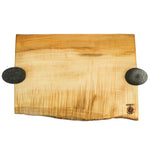 Crafted in collaboration with a local woodworker, boards are approximately 18"-20" wide and made of a variety of hardwoods, including cherry and ash, and vary in tone and wood grain based on the natural variation in materials.