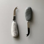 Made with an all natural, ergonomic beach stone handle and fitted with a precision stainless steel blade with a pronged tip for serving all your hard and soft cheeses.