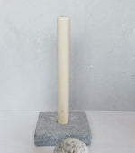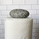 Designed and handcrafted by our local artisans and craftspeople in our Eliot, Maine workshop. Made with repurposed granite slabs, hardwood dowels, and accented with a naturally smooth threaded beach stone topper to easily load new rolls of all paper towel sizes, even jumbo rolls!
