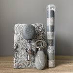 This handcrafted kit is perfect for the at home bartender to get the party started! Featuring our signature Stone Drink Dispenser (available in gray, black, tan, or pink), our Stone Bottle Opener, and a tube of our classic Booze Cubes.