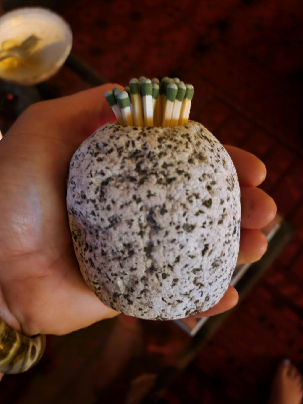 We recommend striking your matches on the bottom of the Stone Match Striker to avoid leaving a sulfur mark on the side of the stone.